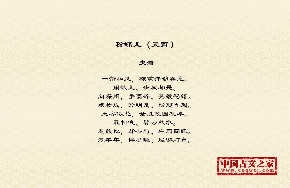 一箭和风,秾熏许多春意。闹蛾儿、满城都是。向深闺,争翦碎、吴绫蜀绮。点妆成,分明是、粉须香翅。玉容似花,全胜故园桃李。最相宜、鬓云秋水。怎教他,却去与、庄周同睡。愿年年,伴星球、烂游灯市。