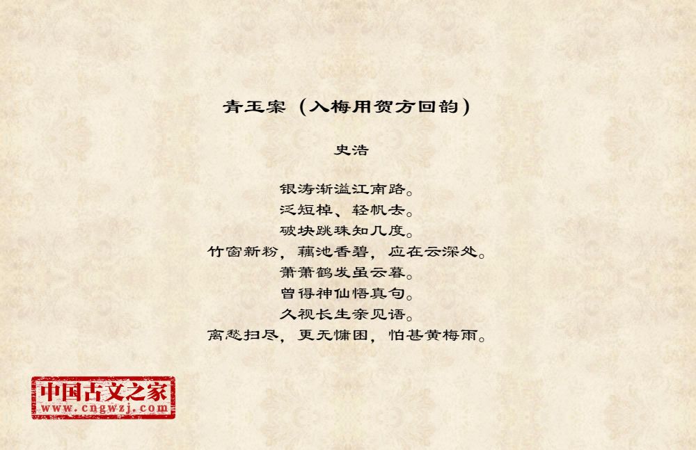 银涛渐溢江南路。泛短棹、轻帆去。破块跳珠知几度。竹窗新粉,藕池香碧,应在云深处。萧萧鹤发虽云暮。曾得神仙悟真句。久视长生亲见语。离愁扫尽,更无慵困,怕甚黄梅雨。