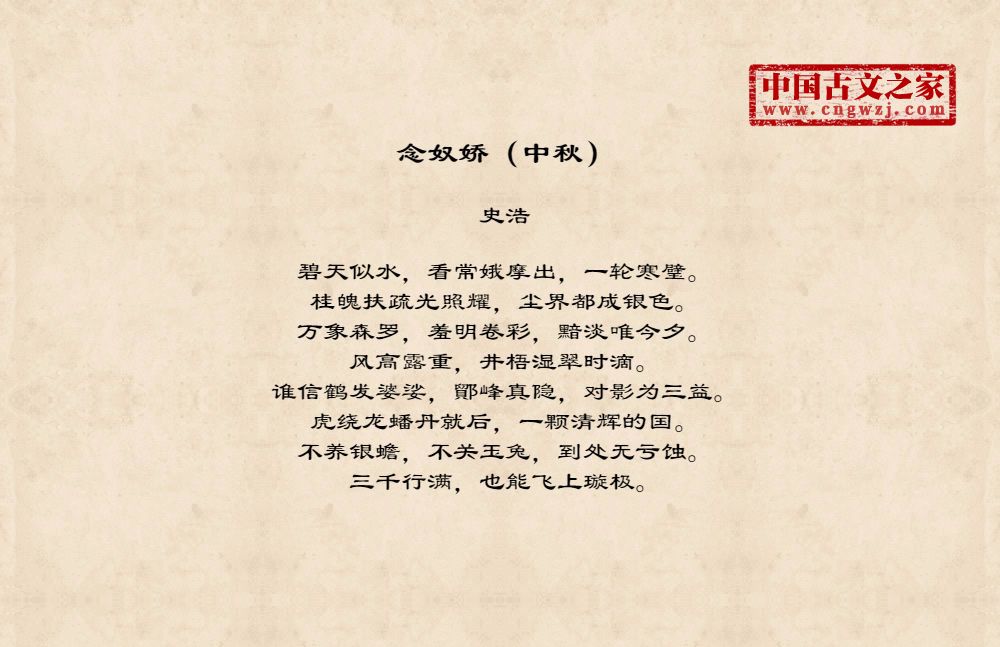 碧天似水,看常娥摩出,一轮寒璧。桂魄扶疏光照耀,尘界都成银色。万象森罗,羞明卷彩,黯淡唯今夕。风高露重,井梧湿翠时滴。谁信鹤发婆娑,鄮峰真隐,对影为三益。虎绕龙蟠丹就后,一颗清辉的国。不养银蟾,不关玉兔,到处无亏蚀。三千行满,也能飞上璇极。