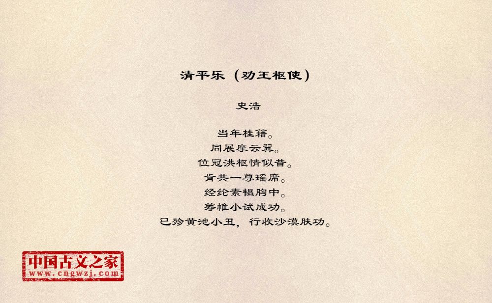 当年桂籍。同展摩云翼。位冠洪枢情似昔。肯共一尊瑶席。经纶素韫胸中。筹帷小试成功。已殄黄池小丑,行收沙漠肤功。
