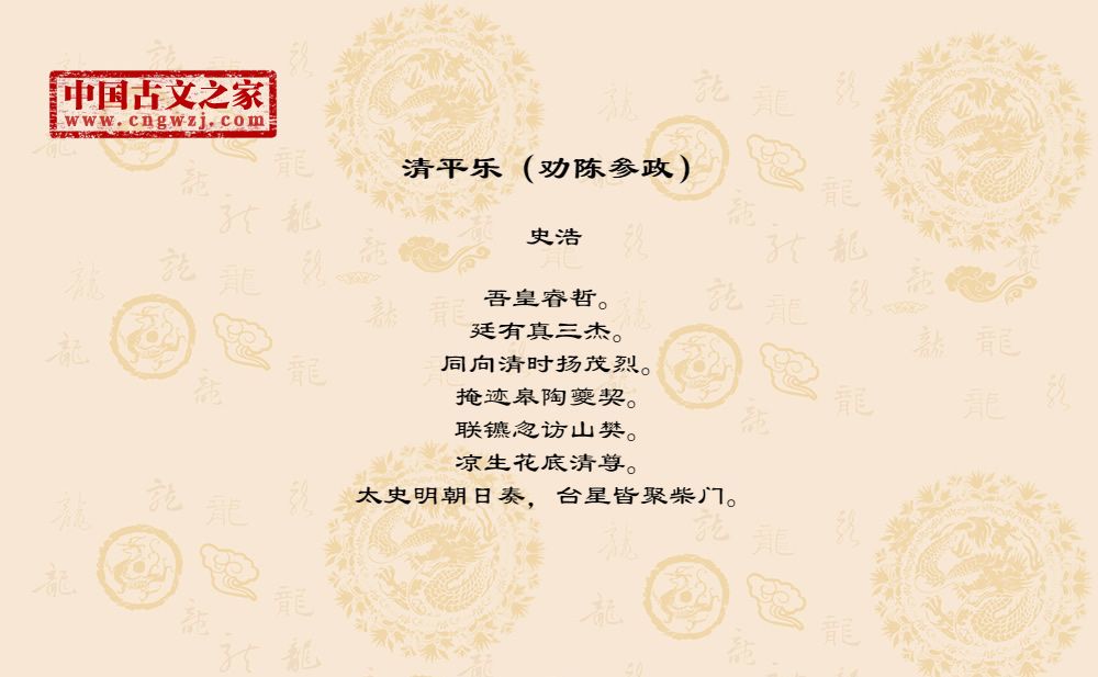 吾皇睿哲。廷有真三杰。同向清时扬茂烈。掩迹皋陶夔契。联镳忽访山樊。凉生花底清尊。太史明朝日奏,台星皆聚柴门。