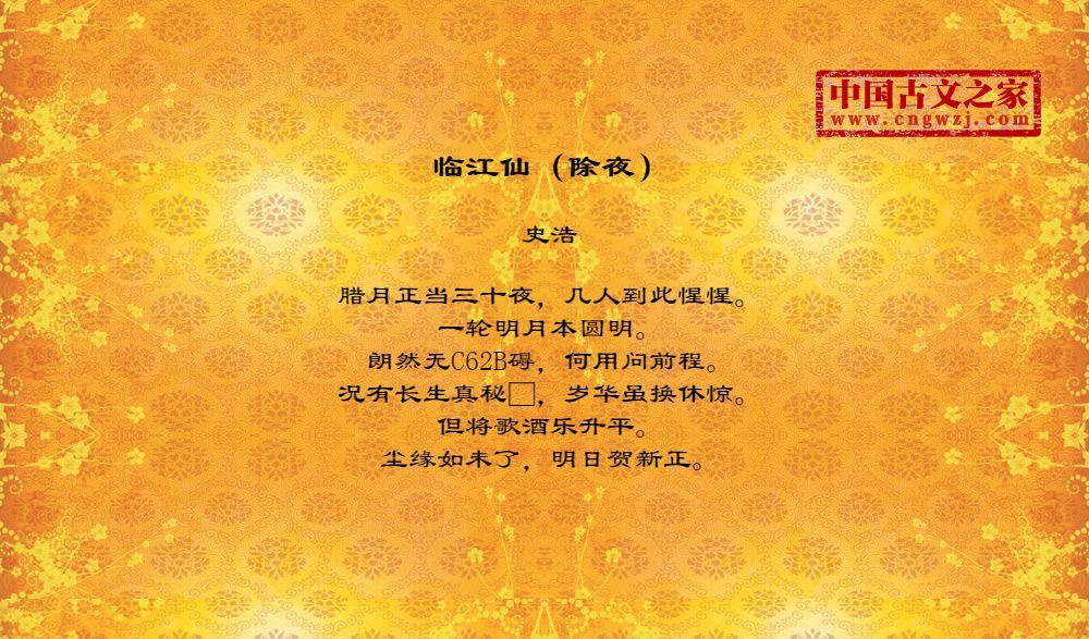 腊月正当三十夜,几人到此惺惺。一轮明月本圆明。朗然无C62B碍,何用问前程。况有长生真秘□,岁华虽换休惊。但将歌酒乐升平。尘缘如未了,明日贺新正。