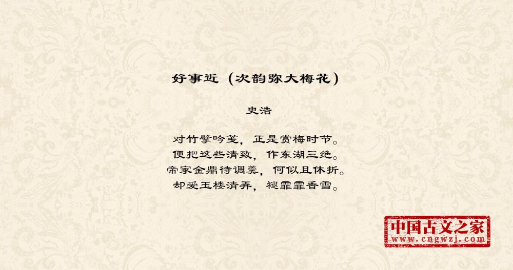 对竹擘吟笺,正是赏梅时节。便把这些清致,作东湖三绝。帝家金鼎待调羹,何似且休折。却爱玉楼清弄,褪霏霏香雪。