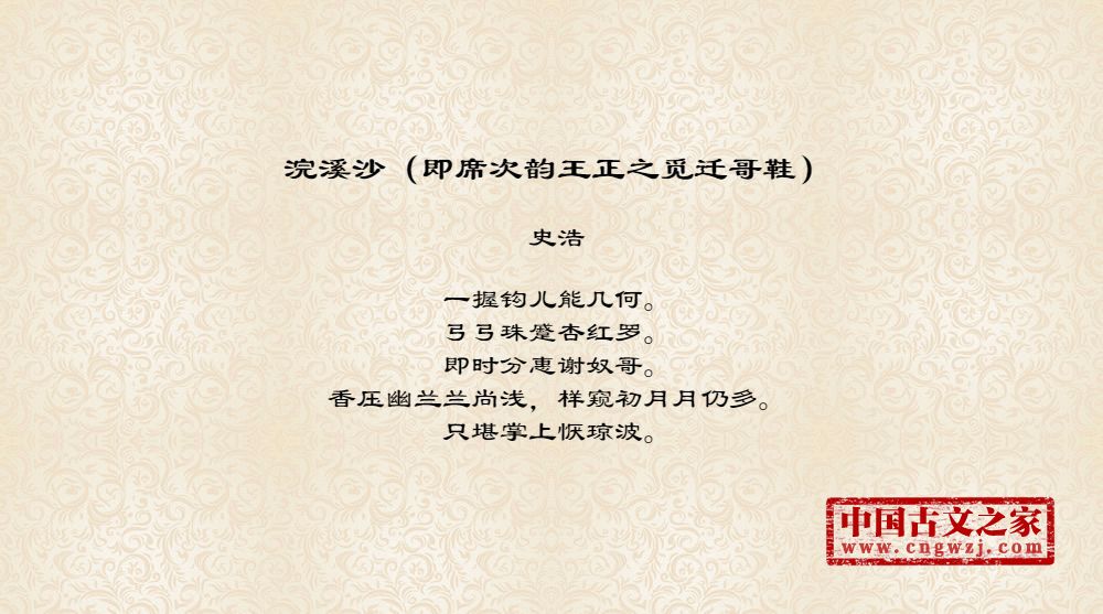 《浣溪沙(即席次韵王正之觅迁哥鞋)》的原文打印版(史浩)