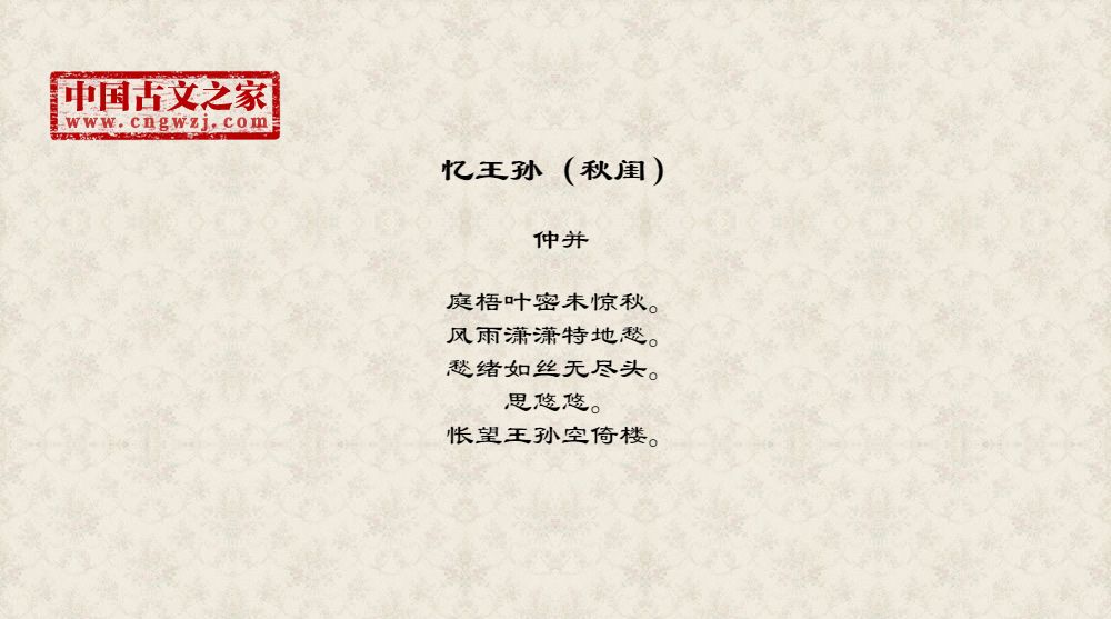 《忆王孙(秋闺)》的原文打印版(仲并)