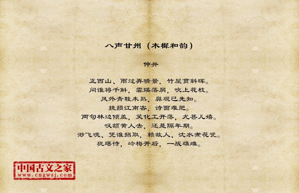 正西山、雨过弄晴景,竹屋贯斜晖。问谁将千斛,霏瑛落屑,吹上花枝。风外青鞋未熟,鼻观已先知。挠损江南客,诗面难肥。两句林边倾盖,笑化工开落,尤甚儿嬉。叹额黄人去,还是隔年期。渺飞魂、凭谁招取,赖故人、沈水煮花瓷。犹堪待,岭梅开后,一战雄雌。