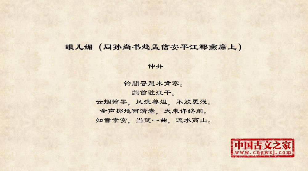 《眼儿媚(同孙尚书赴孟信安平江郡燕席上)》的原文打印版(仲并)
