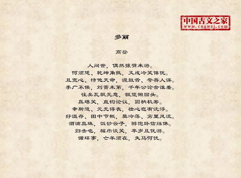 人间世,偶然攘臂来游。何须恁、乾坤角抵,又成冷笑俳优。且宽心、待他天命,谩鼓舌、夸吾人谋。李广不侯,刘蕡未第,千年公论合谁羞。往矣瓦飘无意,甑堕懒回头。真堪笑,直钩论议,圆枘机筹。幸斯道、元无得丧,壮心岂有沈浮。好温存、困中节概,莫冷落、穷里风流。酒滴真珠,饭钞云子,醉饱卧信缘休。归去也,幅巾谈笑,卒岁且优游。循环事,亡羊须在,失马何忧。