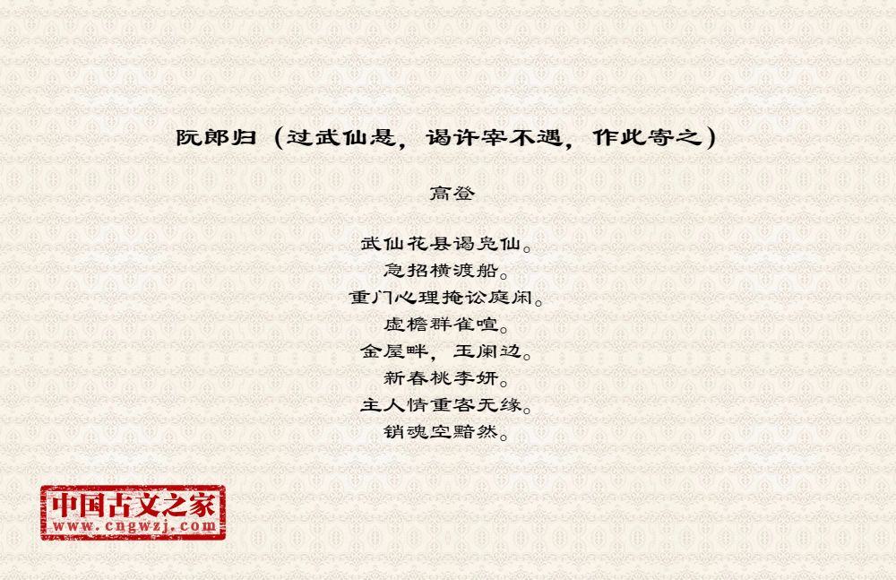 《阮郎归(过武仙悬,谒许宰不遇,作此寄之)》的原文打印版(高登)