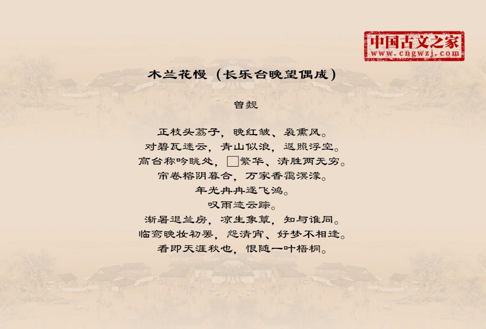 《木兰花慢(长乐台晚望偶成)》由曾觌创作