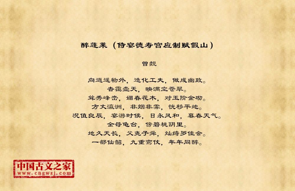 《醉蓬莱(侍宴德寿宫应制赋假山)》由曾觌创作