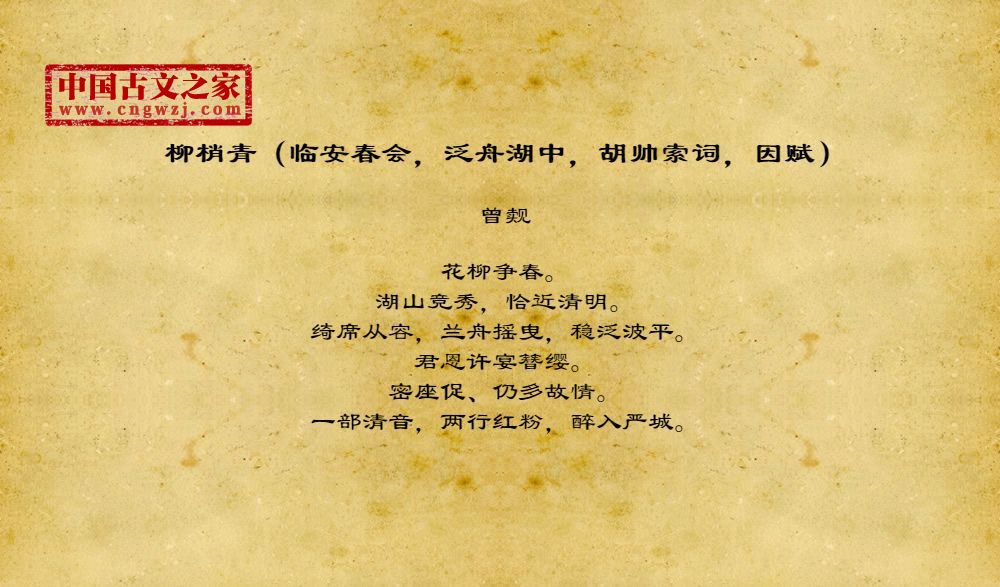 《柳梢青(临安春会,泛舟湖中,胡帅索词,因赋)》的原文打印版(曾觌)
