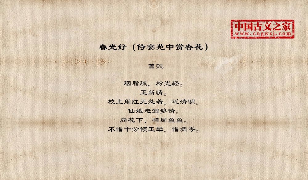 《春光好(侍宴苑中赏杏花)》的原文打印版(曾觌)