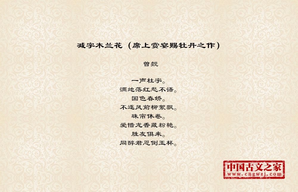 《减字木兰花(席上赏宴赐牡丹之作)》的原文打印版(曾觌)