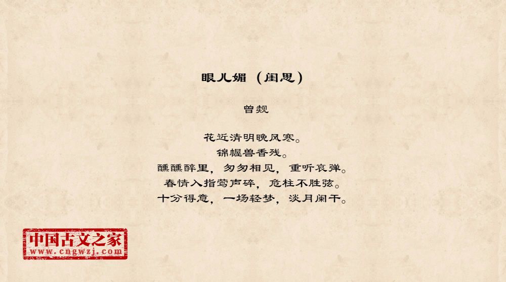 《眼儿媚(闺思)》的原文打印版(曾觌)
