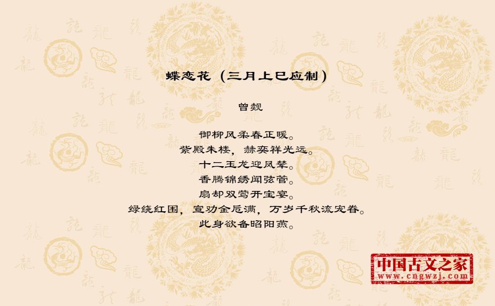《蝶恋花(三月上巳应制)》的原文打印版(曾觌)