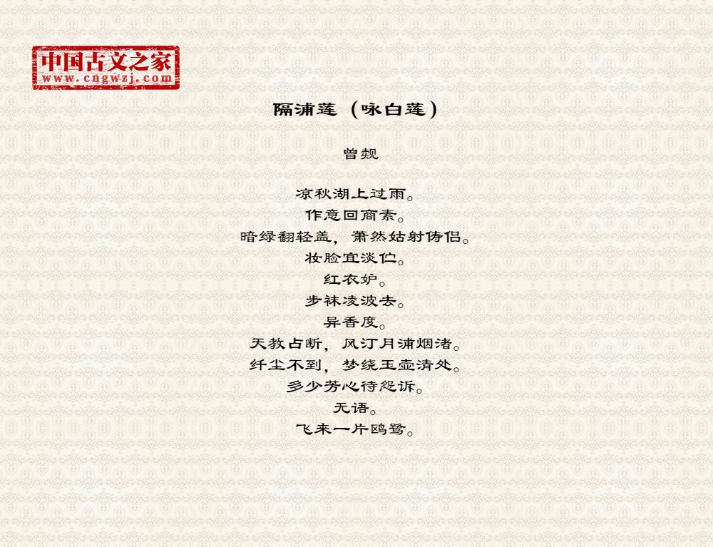 《隔浦莲(咏白莲)》的原文打印版(曾觌)