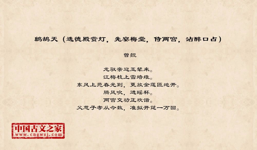 《鹧鸪天(选德殿赏灯,先宴梅堂,侍两宫,沾醉口占)》的原文打印版(曾觌)