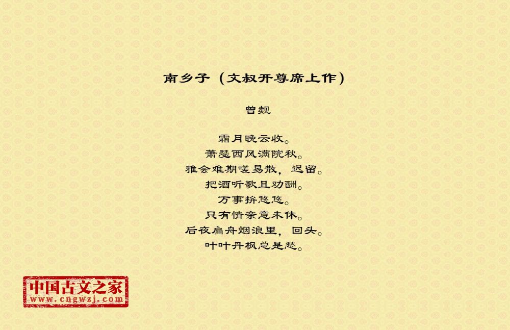 《南乡子(文叔开尊席上作)》的原文打印版(曾觌)