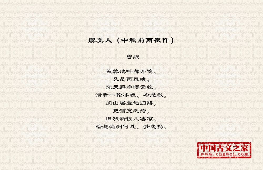 《虞美人(中秋前两夜作)》的原文打印版(曾觌)