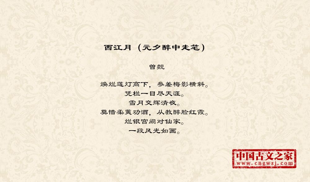 《西江月(元夕醉中走笔)》的原文打印版(曾觌)