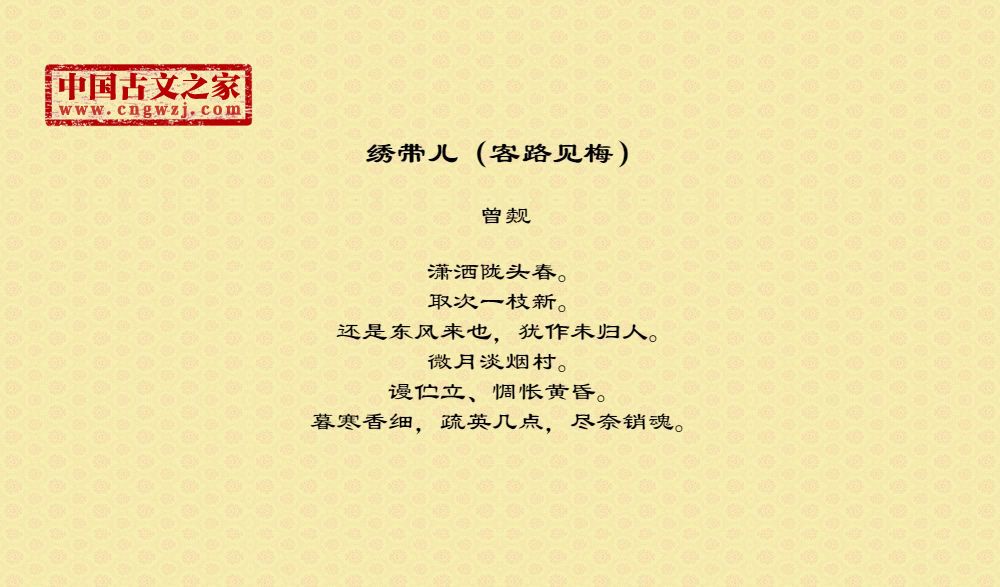 《绣带儿(客路见梅)》的原文打印版(曾觌)