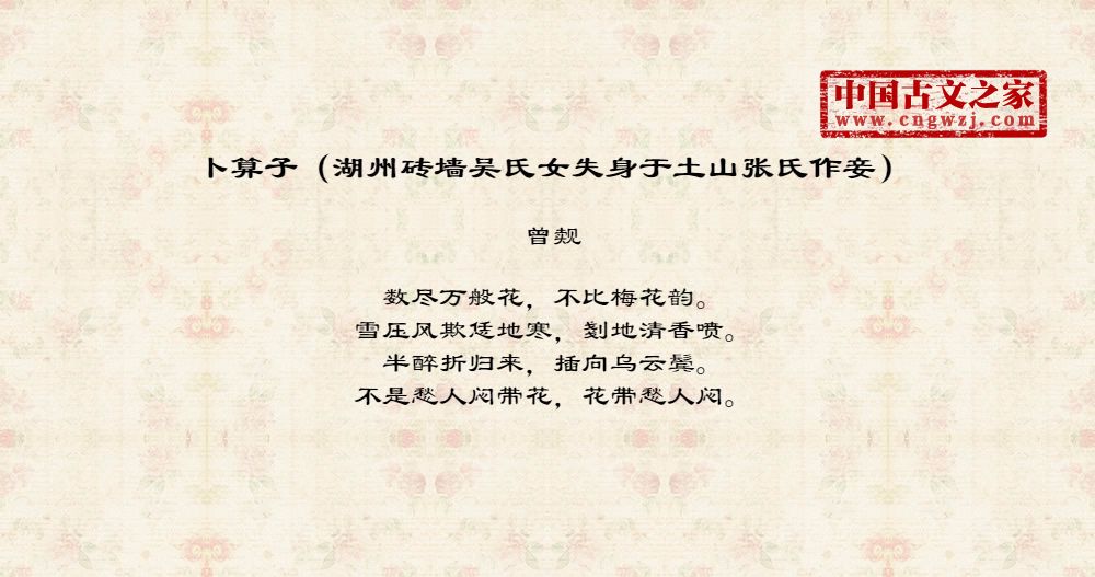 《卜算子(湖州砖墙吴氏女失身于土山张氏作妾)》的原文打印版(曾觌)