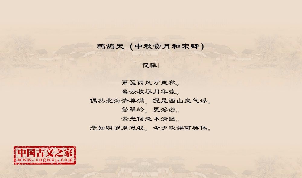 《鹧鸪天(中秋赏月和宋卿)》的原文打印版(倪稱)