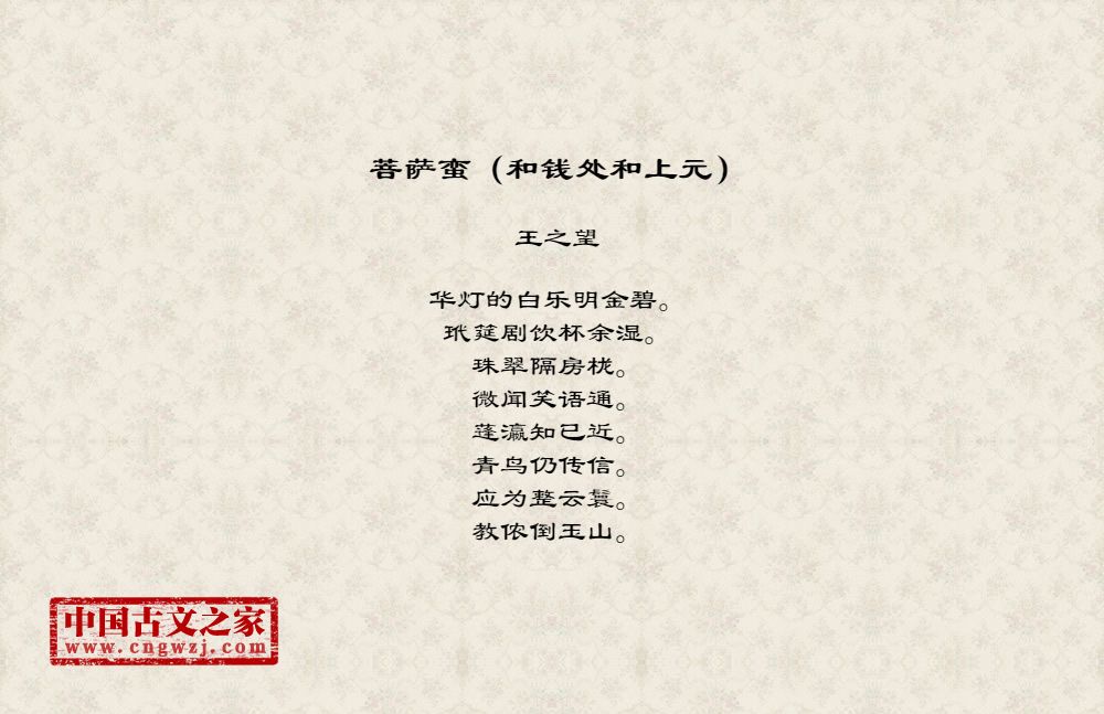 《菩萨蛮(和钱处和上元)》的原文打印版(王之望)