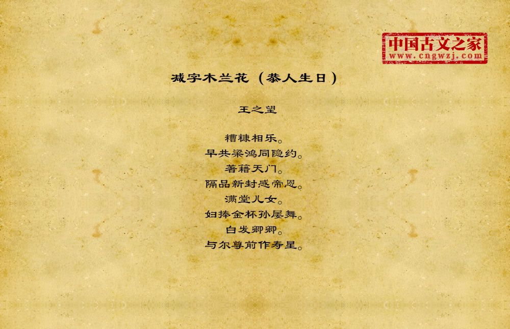 《减字木兰花(恭人生日)》的原文打印版(王之望)