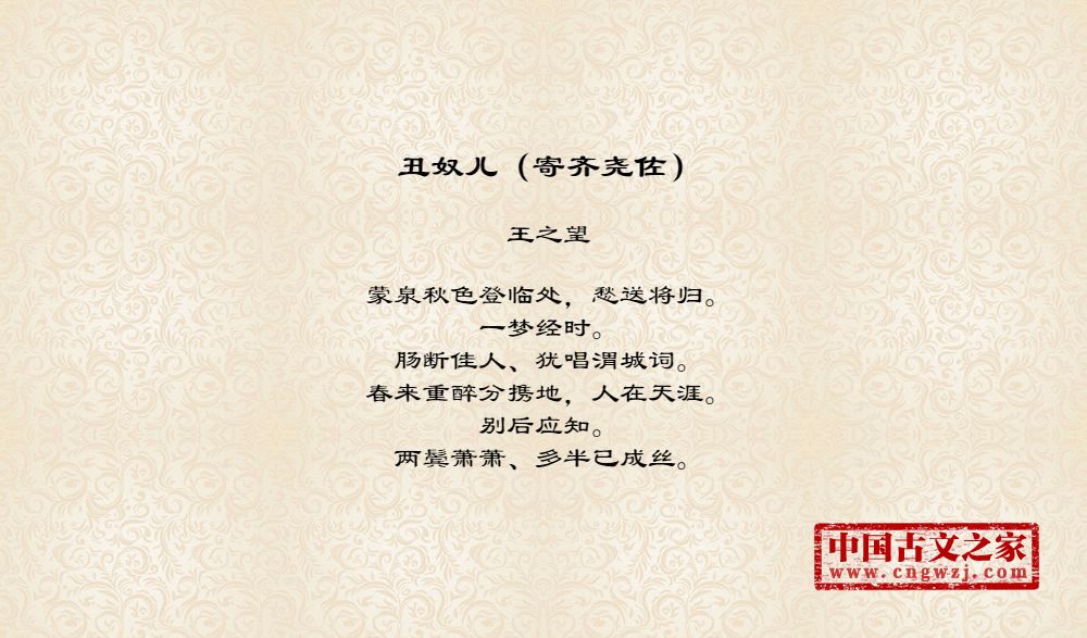 《丑奴儿(寄齐尧佐)》的原文打印版(王之望)