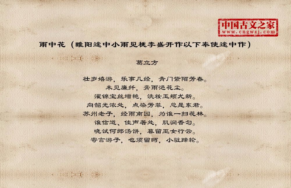 《雨中花(睢阳途中小雨见桃李盛开作以下奉使途中作)》的原文打印版(葛立方)