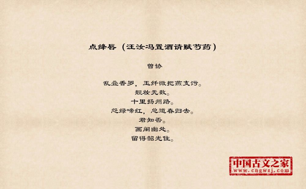 《点绛唇(汪汝冯置酒请赋芍药)》的原文打印版(曾协)