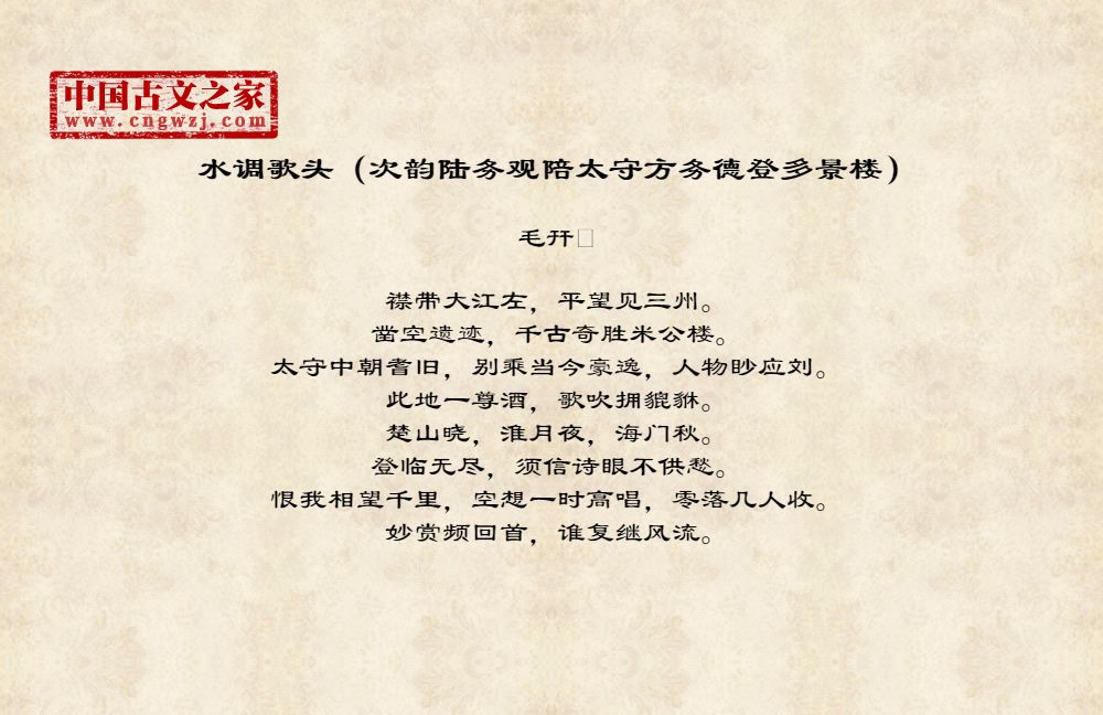 《水调歌头(次韵陆务观陪太守方务德登多景楼)》由毛幵创作