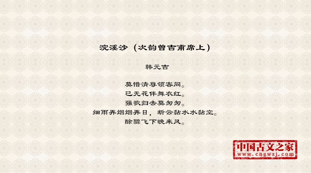 《浣溪沙(次韵曾吉甫席上)》的原文打印版(韩元吉)