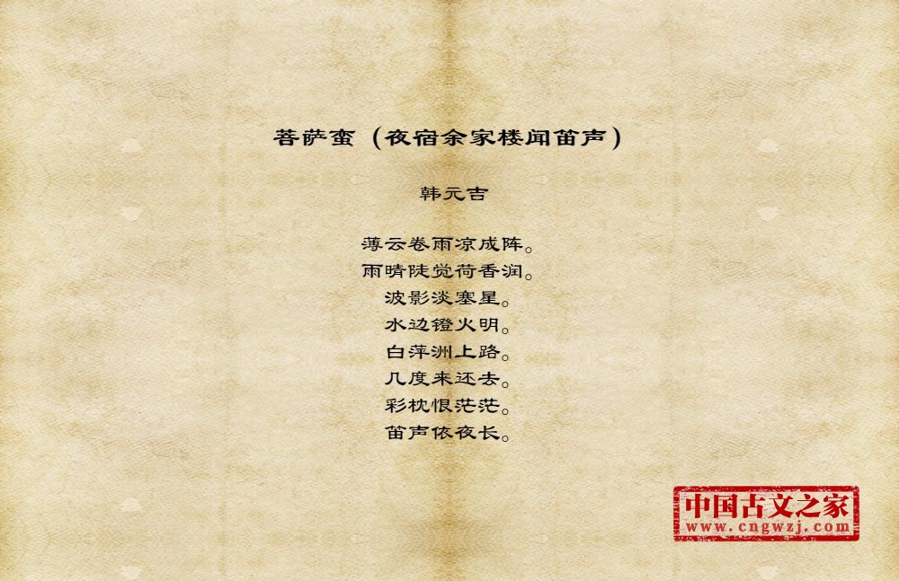 《菩萨蛮(夜宿余家楼闻笛声)》的原文打印版(韩元吉)