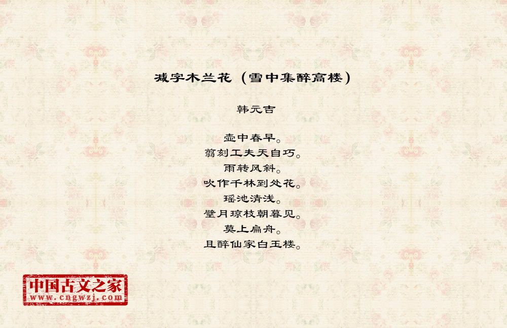 《减字木兰花(雪中集醉高楼)》的原文打印版(韩元吉)