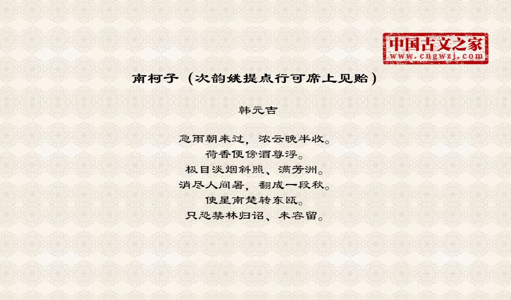 《南柯子(次韵姚提点行可席上见贻)》的原文打印版(韩元吉)