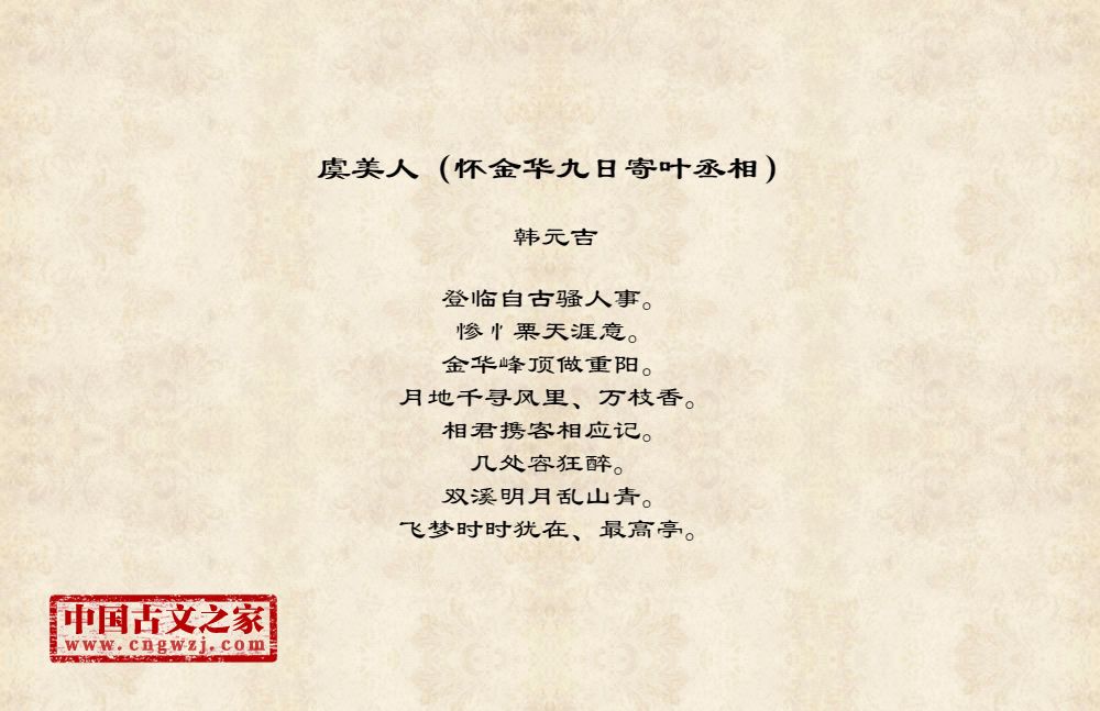 《虞美人(怀金华九日寄叶丞相)》的原文打印版(韩元吉)