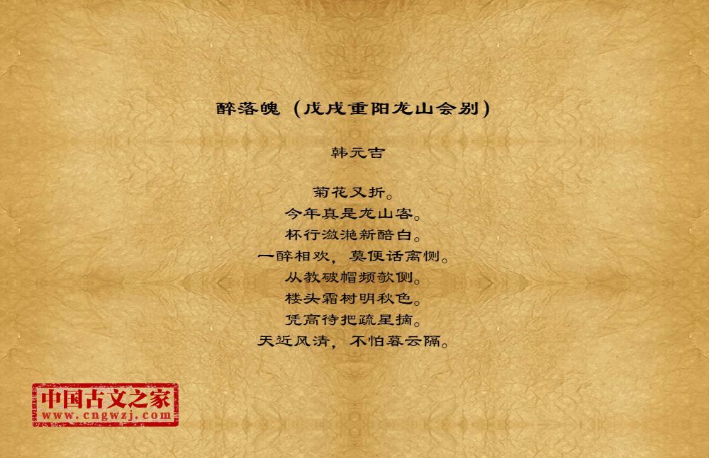 《醉落魄(戊戌重阳龙山会别)》的原文打印版(韩元吉)