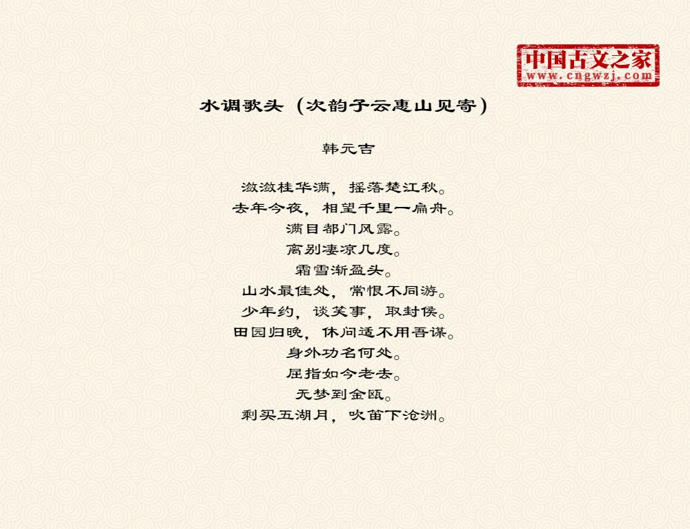 《水调歌头(次韵子云惠山见寄)》的原文打印版(韩元吉)