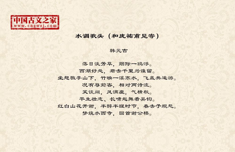 《水调歌头(和庞祐甫见寄)》的原文打印版(韩元吉)