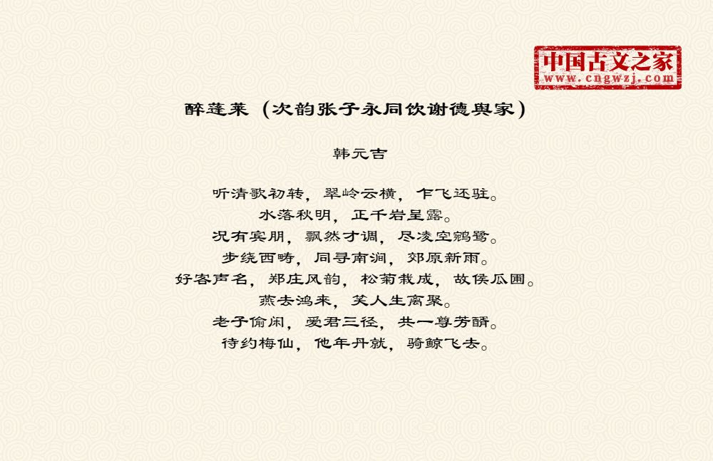 《醉蓬莱(次韵张子永同饮谢德舆家)》的原文打印版(韩元吉)
