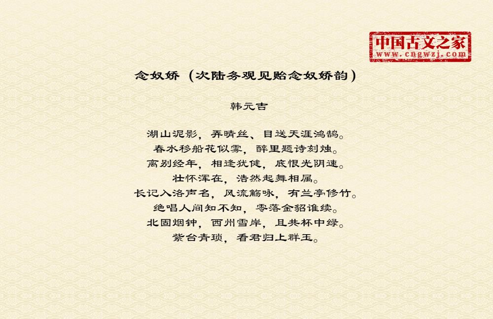 念奴娇(次陆务观见贻念奴娇韵)