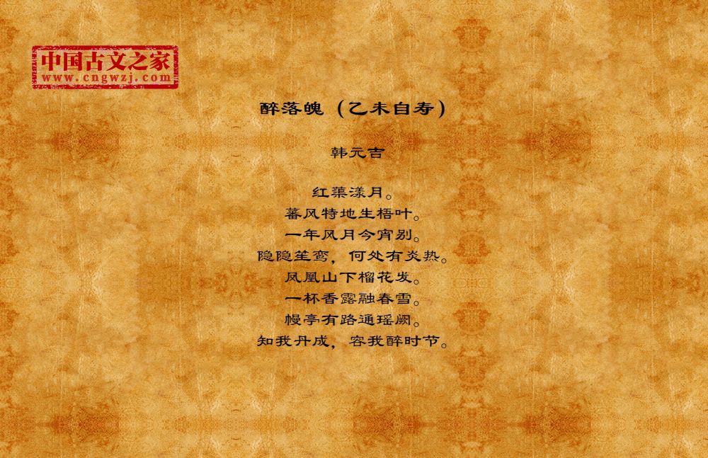红蕖漾月。蕃风特地生梧叶。一年风月今宵别。隐隐笙鸾,何处有炎热。凤凰山下榴花发。一杯香露融春雪。幔亭有路通瑶阙。知我丹成,容我醉时节。
