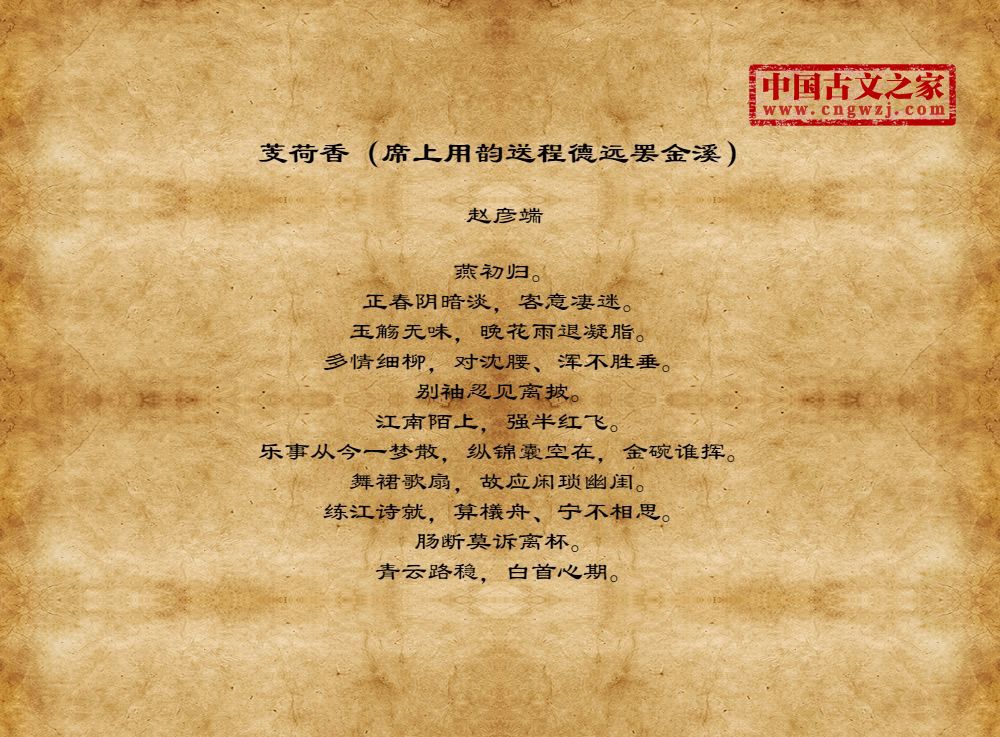 《芰荷香(席上用韵送程德远罢金溪)》的原文打印版(赵彦端)