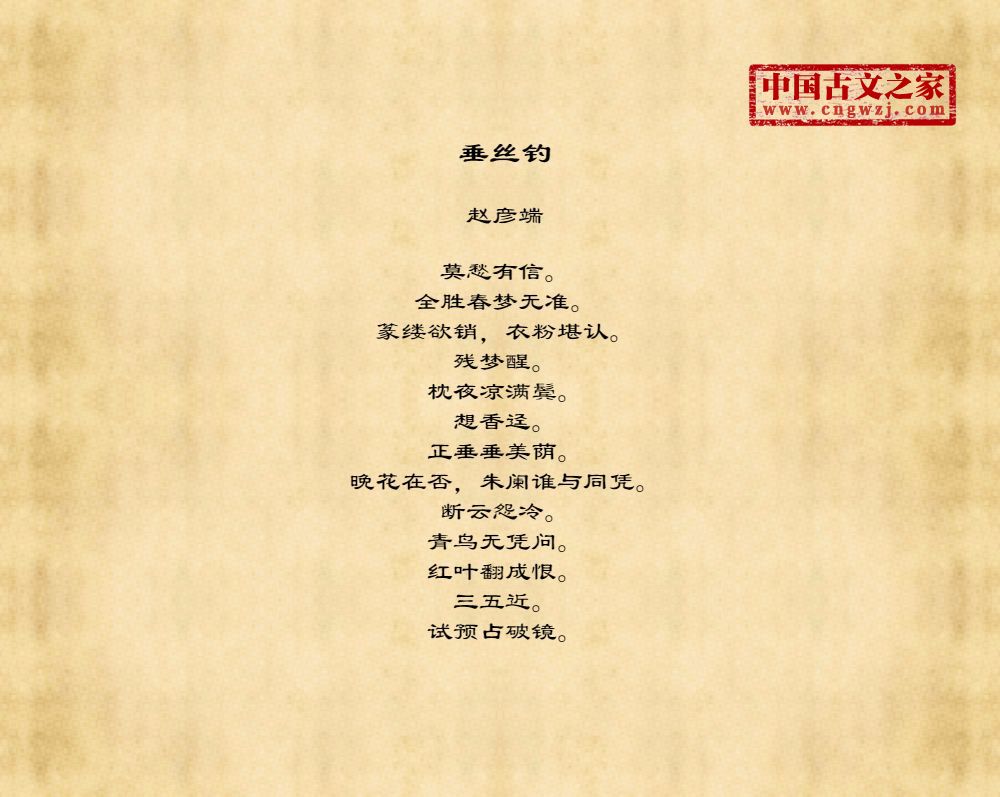 《垂丝钓》的原文打印版(赵彦端)