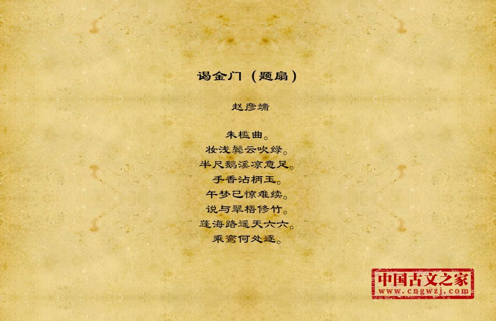 《谒金门(题扇)》由赵彦端创作