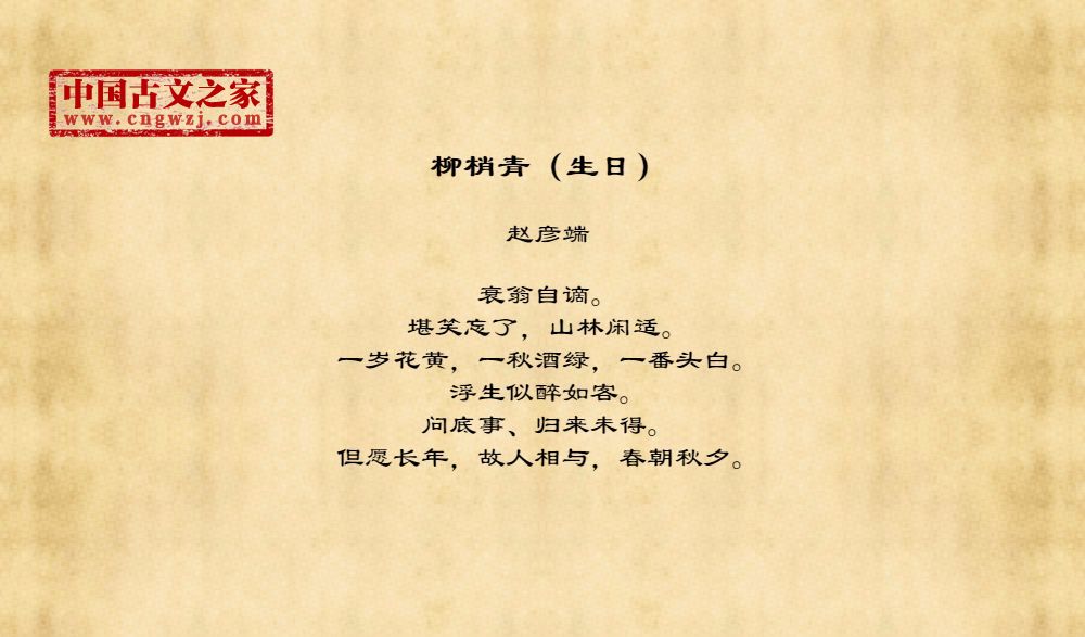 《柳梢青(生日)》的原文打印版(赵彦端)
