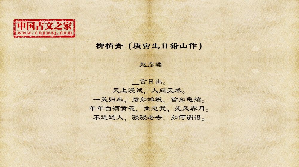 《柳梢青(庚寅生日铅山作)》的原文打印版(赵彦端)